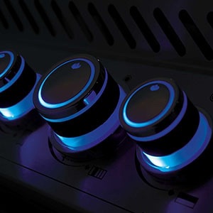 Podsvícení ovládacích knoflíků v příjemném modrém odstínuoceníte při podvečerním grilování (na tužkové baterie nebo v případě vnitřního osvětlení grilu komplet na 220 V).