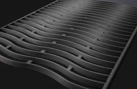Je vlnité provedení grilovacího roštu, které zamezuje propadnutí drobných grilovaných surovin na hořáky grilu.