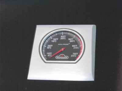 Je kvalitní masivní kovový teploměr zabudovaný ve víku grilu.